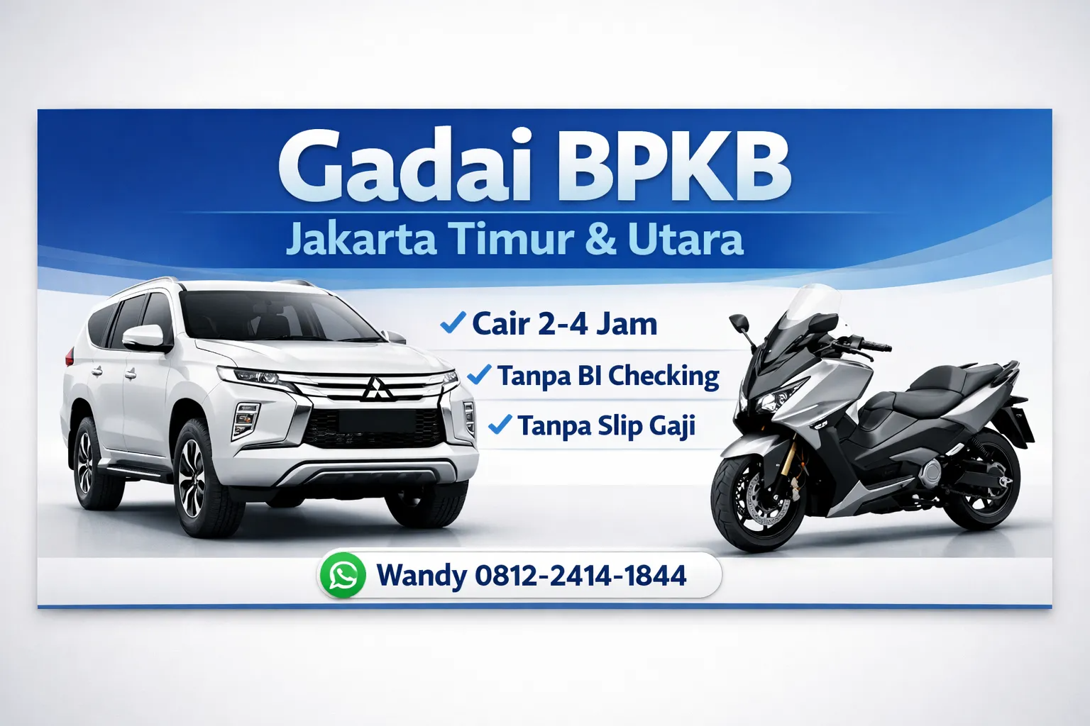 Gadai BPKB motor & mobil — proses via WhatsApp, tidak perlu ke kantor manapun.