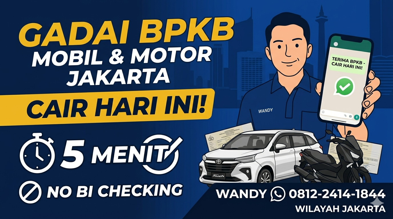Gadai BPKB bukan sesuatu yang baru di Jakarta. Tapi yang berubah adalah caranya. Tidak perlu lagi antre berjam-jam di kantor, tidak perlu bawa berkas setumpuk, tidak perlu takut ditolak karena riwayat kredit. Cukup foto empat dokumen dari HP, kirim via WhatsApp, dan dana bisa cair di hari yang sama — sementara mobil atau motor Anda tetap Anda gunakan untuk beraktivitas.