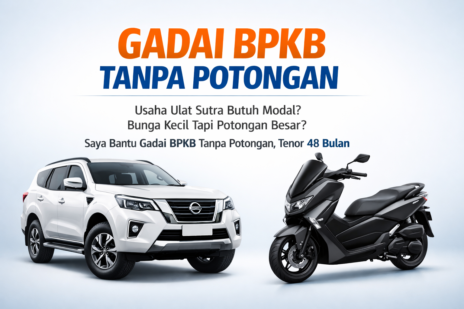Berdasarkan pengalaman saya membantu nasabah dengan situasi serupa, gadai BPKB tanpa potongan adalah solusi yang lebih transparan dan adil. Bunga 1,2% flat per bulan, tanpa potongan administrasi, tanpa provisi, tanpa asuransi yang tidak jelas. Dana yang Anda setujui, itulah yang masuk ke rekening Anda. Plus tenor panjang hingga 48 bulan yang membuat cicilan lebih ringan.