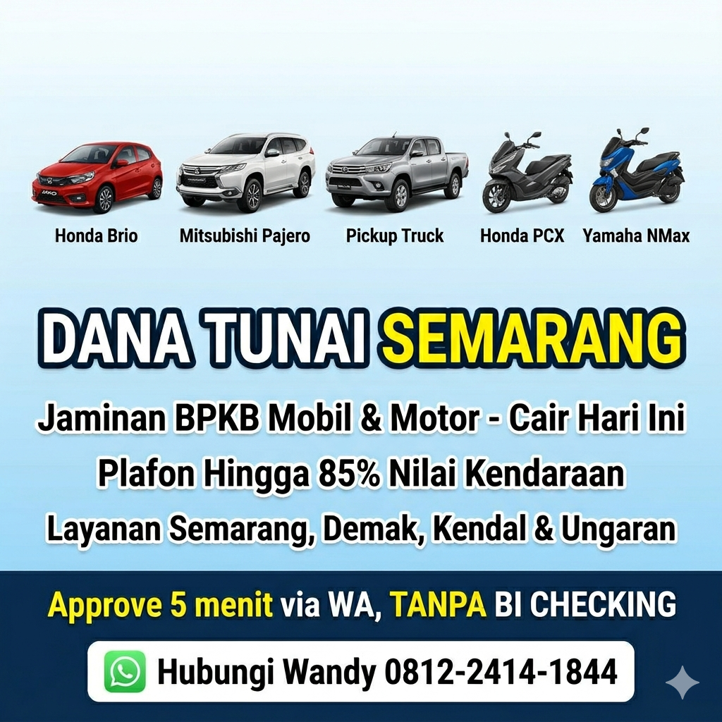 Ketika bank meminta slip gaji dan proses berhari-hari, ketika leasing mensyaratkan BI Checking bersih dan dokumen setumpuk — banyak pelaku usaha Semarang justru memilih jalan yang lebih cepat dan lebih masuk akal: gadai BPKB kendaraan yang sudah lunas. Dana cair hari ini, kendaraan tetap di tangan, proses hanya lewat WhatsApp.